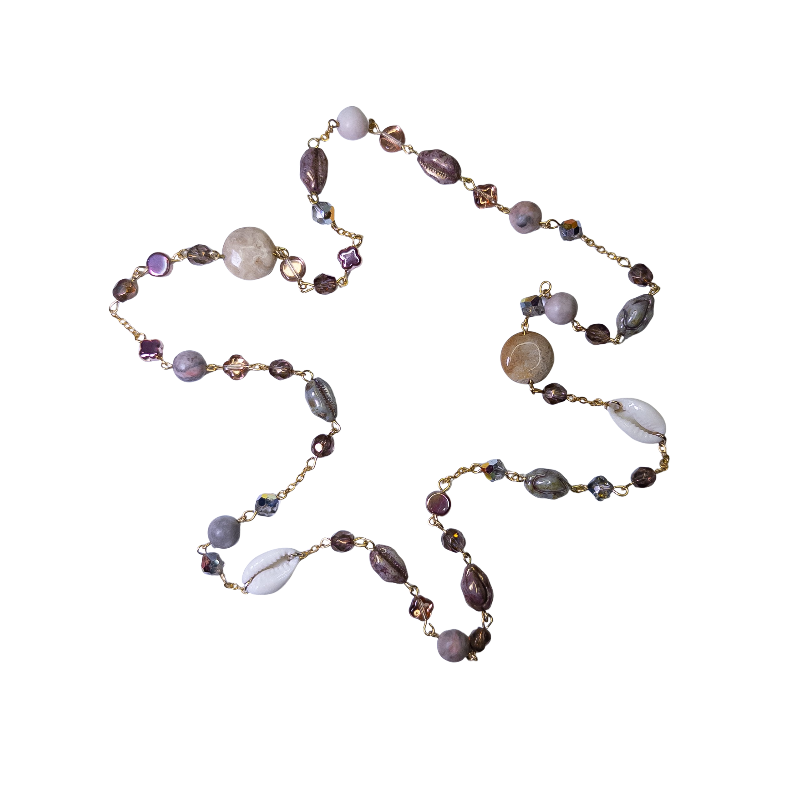 Náhrdelník z korálů, jaspisu a mušlí – 60 cm dlouhý šperk s nádechem přírody