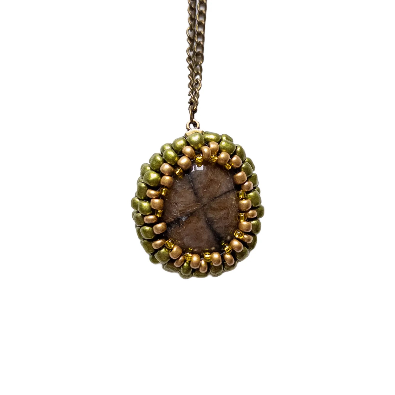 Tento elegantní náhrdelník s chiastolitem je obklopen korálky v odstínech zlaté a olivově zelené, které podtrhují přirozenou krásu kamene. Chiastolit je známý jako kámen rovnováhy a ochrany, pomáhá udržet klid v náročných situacích a podporuje jasné myšlení. Je ideální volbou pro znamení Vah a Kozoroha, kterým přináší harmonii a stabilitu.