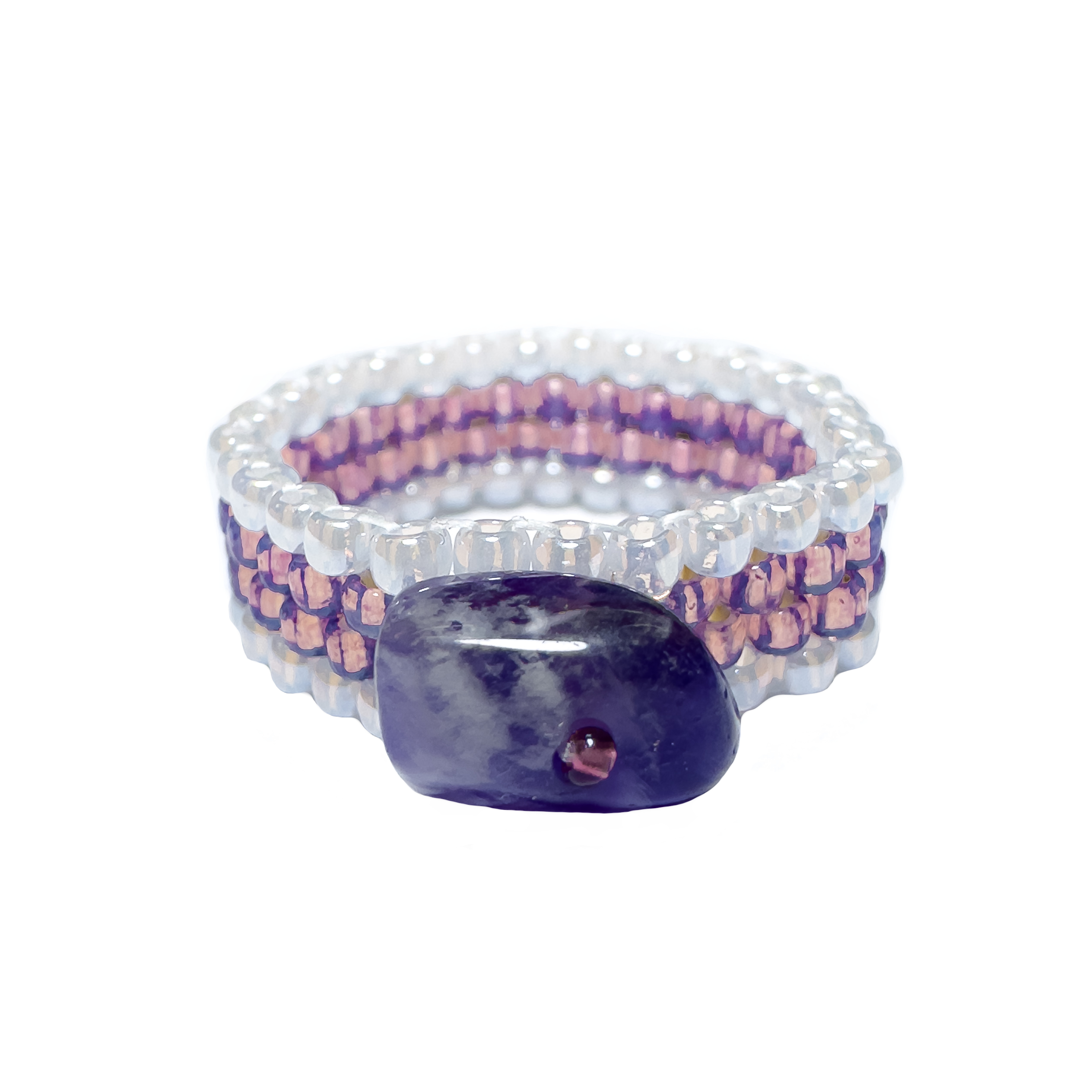 Prstýnek je z nylonového lanka a korálků ze skla.