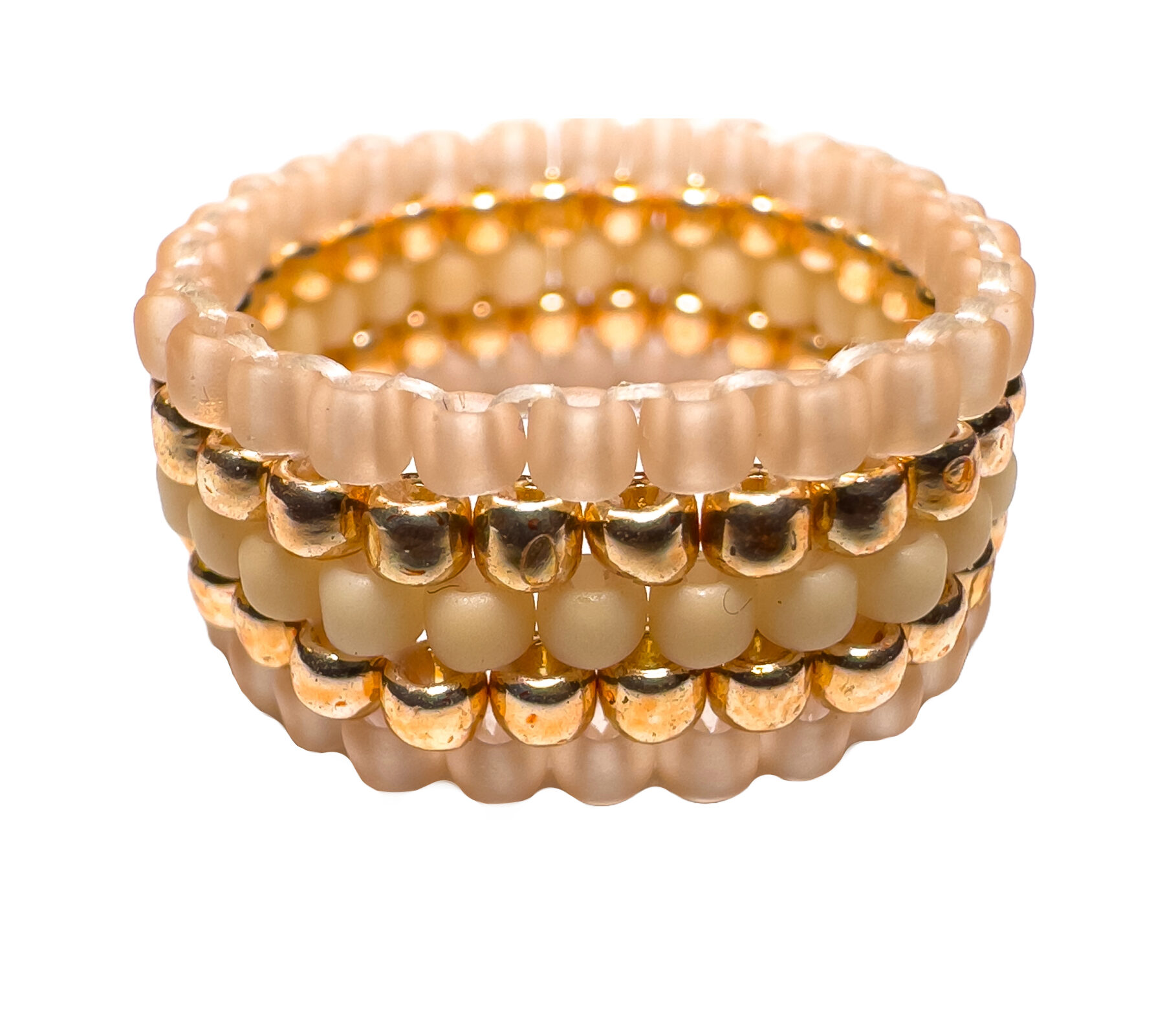 Prstýnek je z nylonového lanka a korálků ze skla.