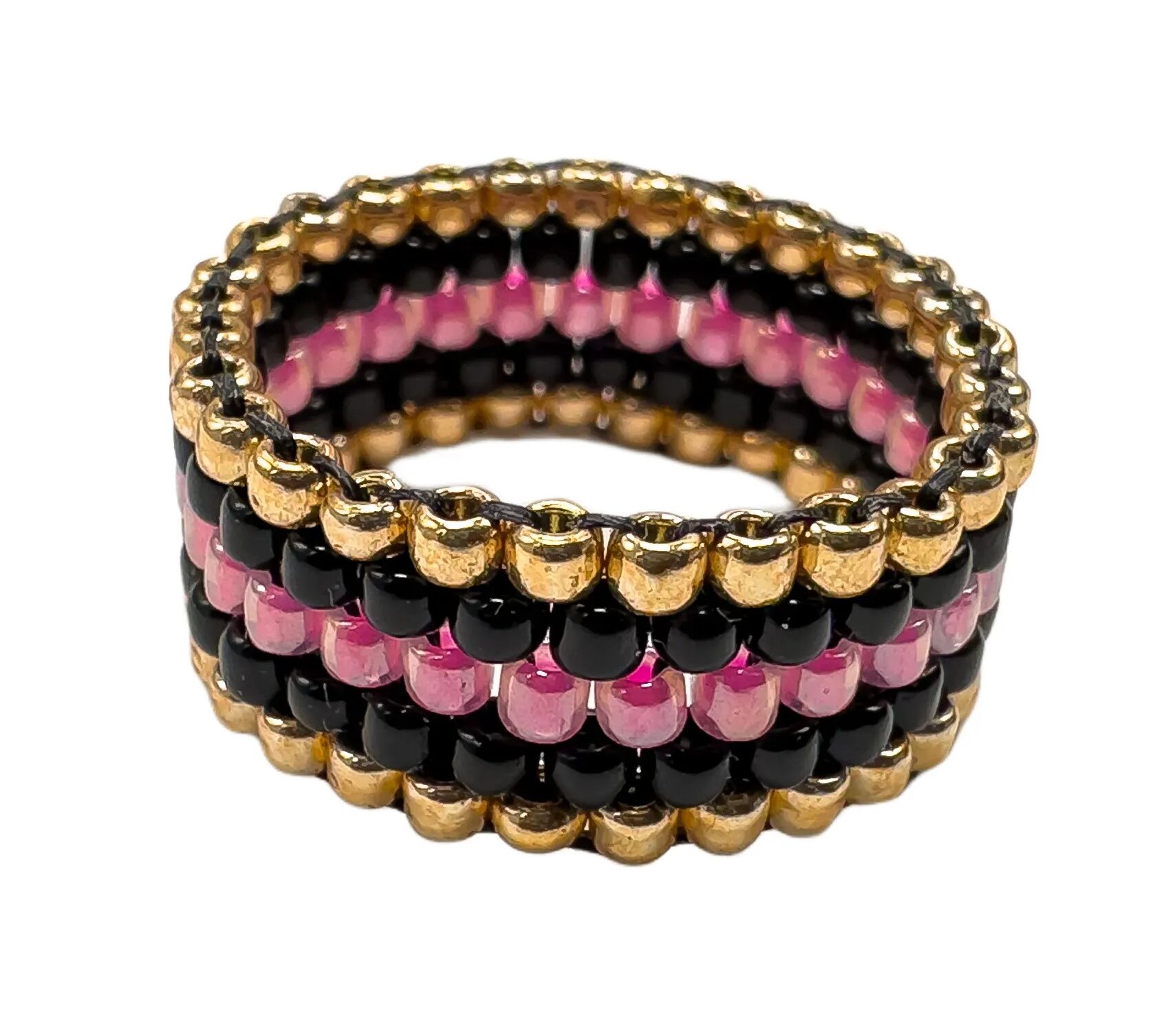 Prstýnek je z nylonového lanka a korálků ze skla.