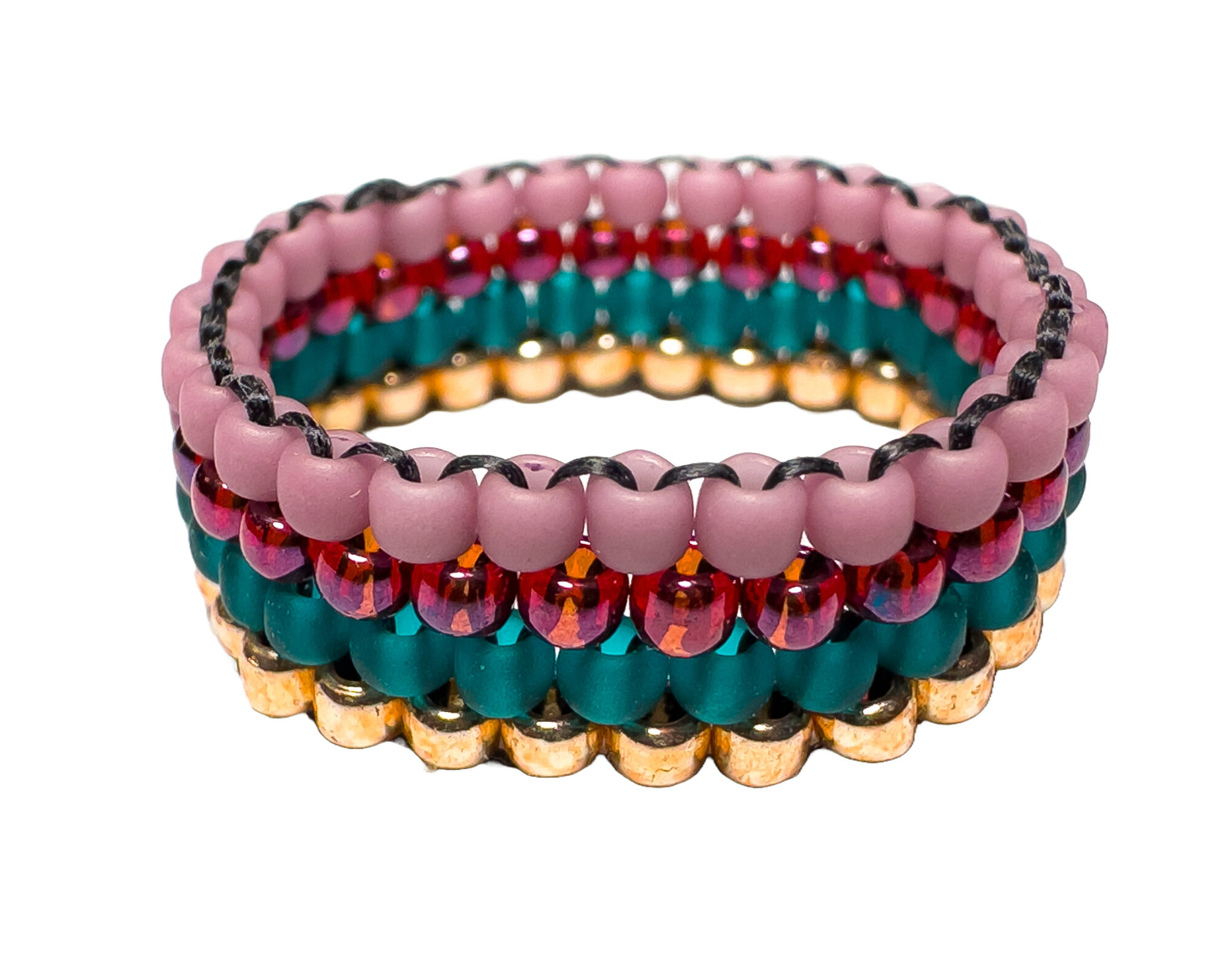 Prstýnek je z nylonového lanka a korálků ze skla.