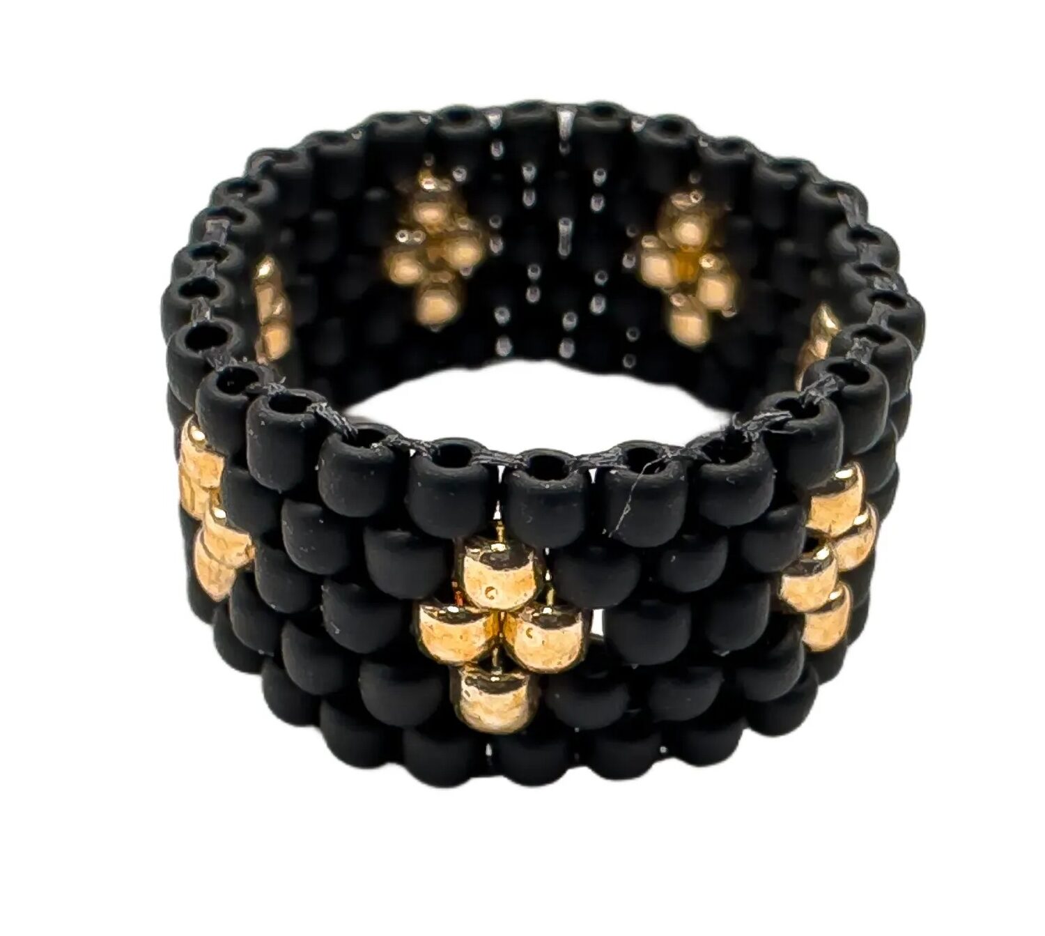 Prstýnek je z nylonového lanka a korálků ze skla.