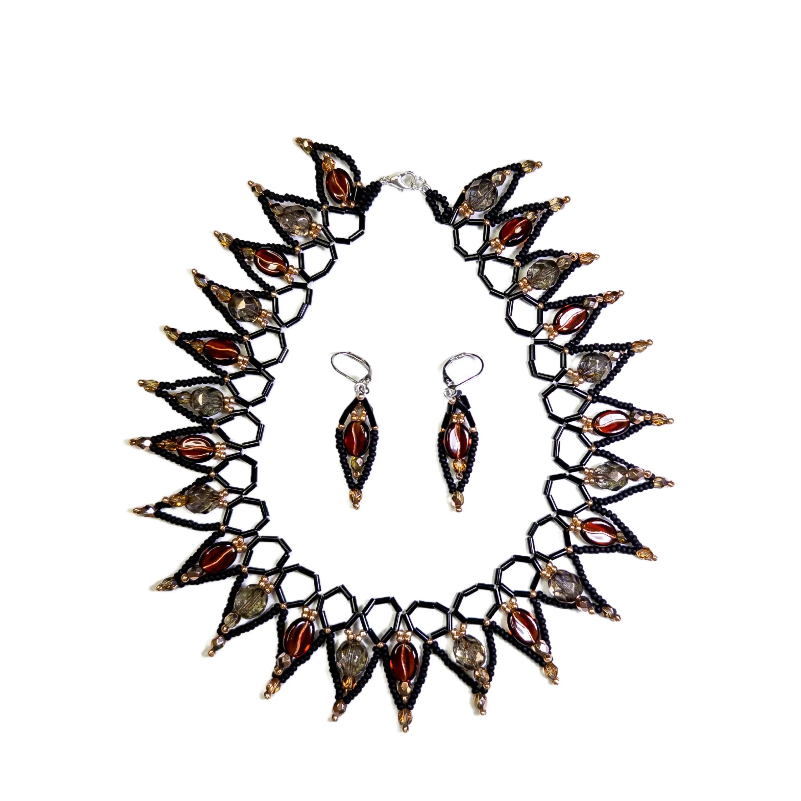 Tento jedinečný set náhrdelníku a náušnic v elegantní barevné kombinaci „černá káva“ je stvořen pro ty, kdo milují nejen chuť, ale i styl kávové kultury. Ručně šitý náhrdelník s přívěsky ve tvaru kávových zrn vyniká tmavými odstíny černé a hnědé, připomínající hloubku čerstvě namleté kávy. Set je ideální pro doladění outfitu do práce i na večerní posezení s přáteli. Náhrdelník, vyrobený z bižuterního kovu, má délku 39 cm a nastavitelné zapínání pro pohodlné nošení. Náušnice pak jemně dotvářejí celkový vzhled a dodávají šperku harmonii.